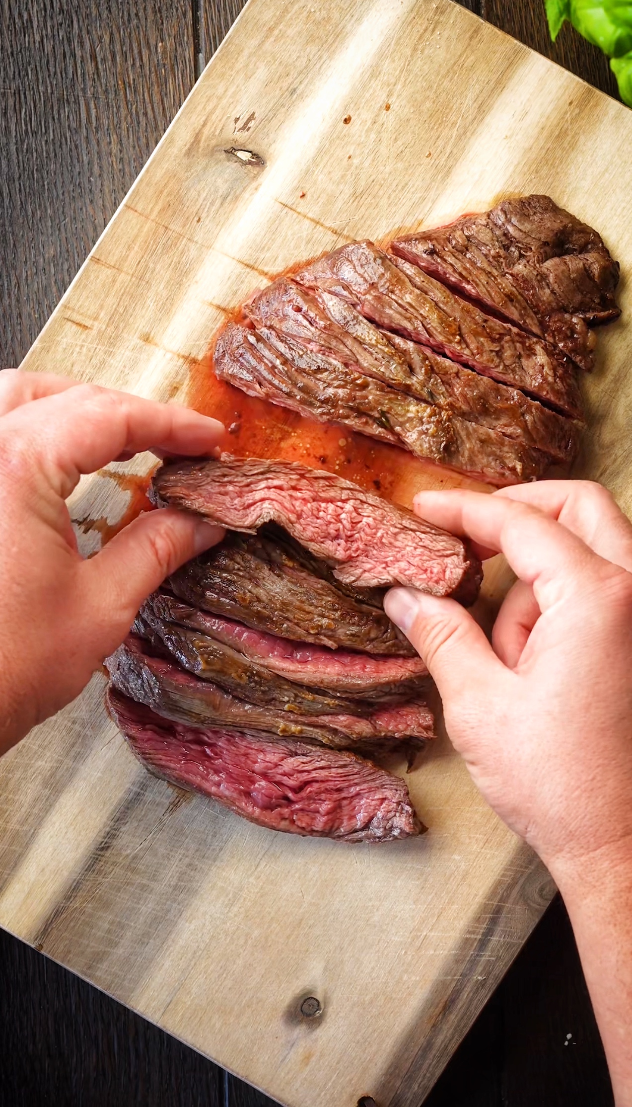 - Anschließend 5 Minuten ruhen lassen, dann gegen die Faser aufschneiden.